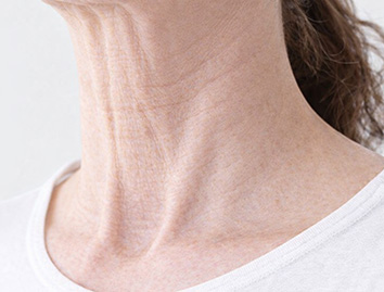 피부 탄력이 점차 저하되면서 가로주름이 깊어지고 세로 밴드가 도드라져 보일 수 있는 목주름 형태